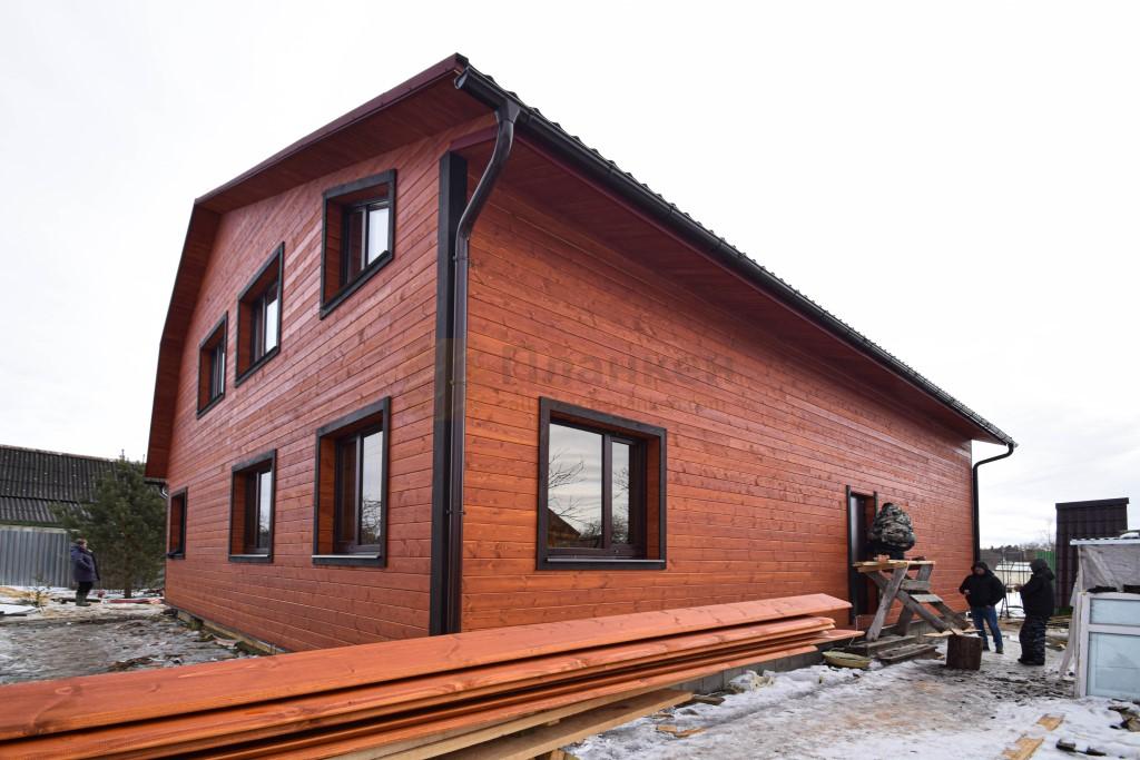 Карнизы крыши подшивают в последнюю очередь. Это заключительный этап строительства и выполнения наружной облицовки здания. Одновременно с подшивкой монтируется водосточная система. Доски из натуральной древесины делают дом уютным и живым. Подшитые свесы защищают фасад от воздействия внешних неблагоприятных факторов и разрушения.