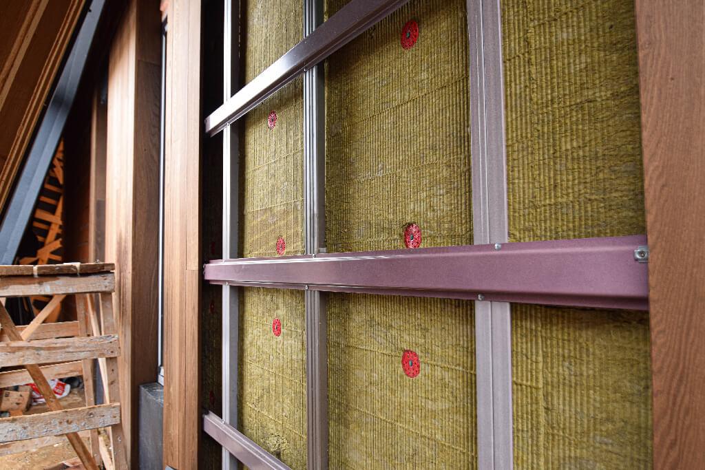 После монтажа подсистемы выполняется прокладка утеплителя. Перед укладкой его плит необходимо обеспечить пароизоляционный слой. Пароизоляцию укладывают внахлест и тщательно проклеивают стыки соответствующим скотчем. Она защитит утеплитель от воздействия влаги, которую выделяют деревянные стены. Это крайне важно сделать. При попадании влаги на утеплитель, он утрачивает теплоизоляционные качества, а затем разрушается. Во всех строительных алгоритмах предусмотрена защита утепляющего слоя. Плиты утеплителя вставляют плотно между лагами подсистемы, под планкен. Бруски обрешетки должны надежно их обжимать. Снаружи защита утеплителя обеспечивается гидроветрозащитным материалом – супердиффузионной мембраной. Она укладывается под планкен с нахлестом, фиксируется на каркасе при помощи промышленного степлера.
