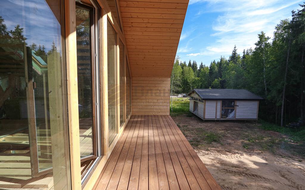 Фото 2. Прямой планкен из лиственницы на фасаде дома