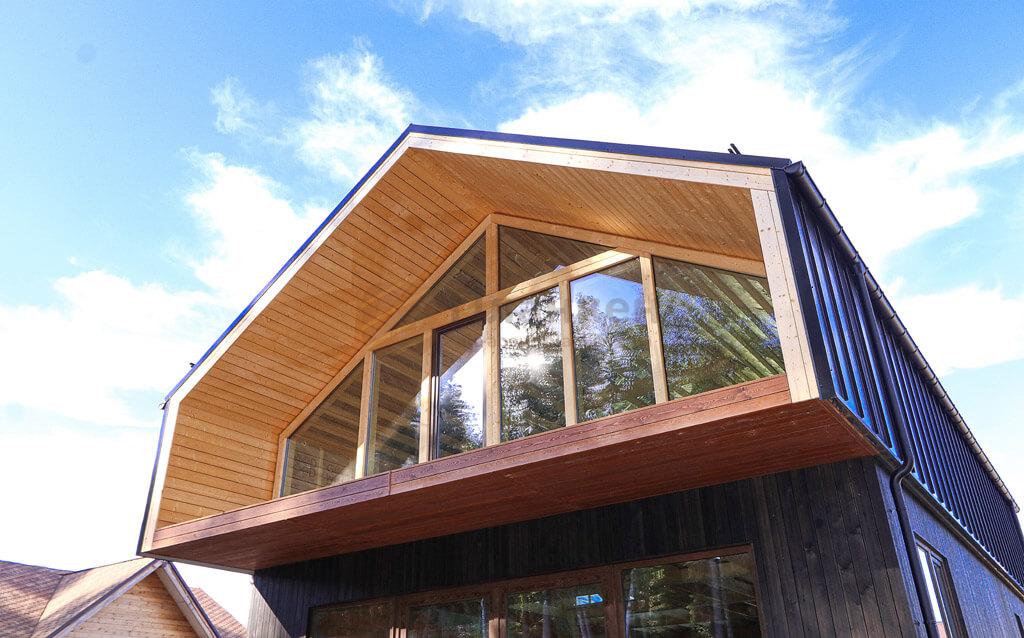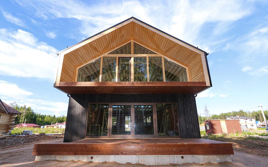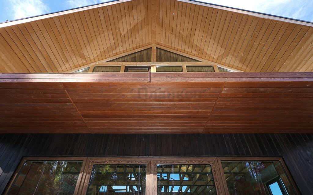 Фото 1. Фасад дома обшитый планкеном из лиственницы