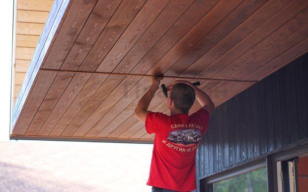 - Вагонка. Простой монтаж, который легко осилить самостоятельно. Материал крепится на предварительно установленную обрешетку. Причем сохраняется подвижность материала, а между досками нет щелей. С помощью фигурного профиля по краям вагонки формируется надежное сцепление. Стыки имеют рельеф, который не только фиксирует конструкцию, но и служит в качестве декора.
